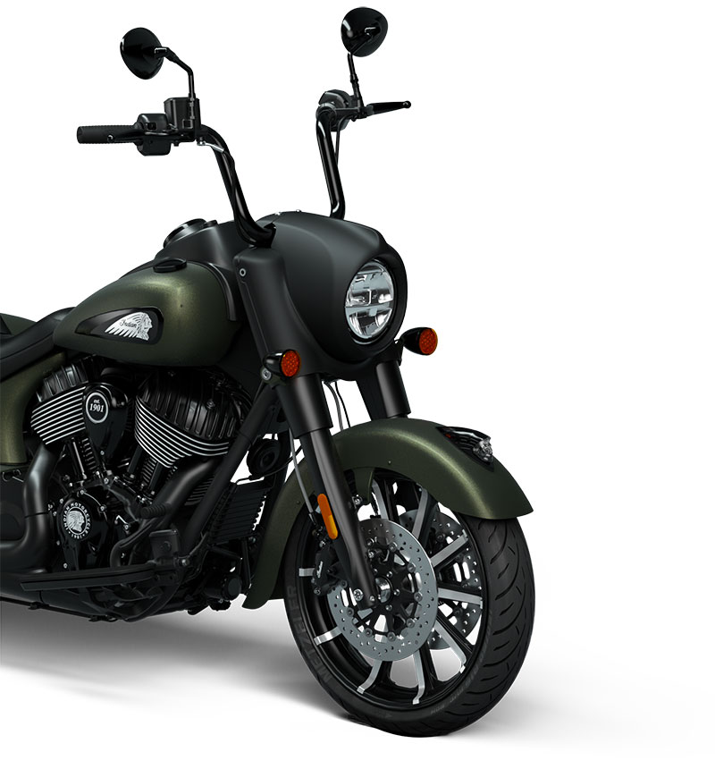 Indian Springfield Dark Horseは、より多くを求める人のためのモデルです。流線型のスタンス、パワフルなVツイン、不敵なスタイリングで、見た目通りの力強い走りを見せます。
