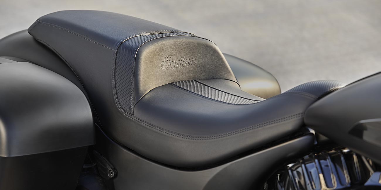 | 標準装備 | クイックリリース・ウインドシールド、リモートロック式ハードサドルバッグ、ハイウェイバー、ライドモード、ABS、クルーズコントロール、キーレスイグニッション、インディアン®スクリプトタンクバッジ、12V充電ポート |